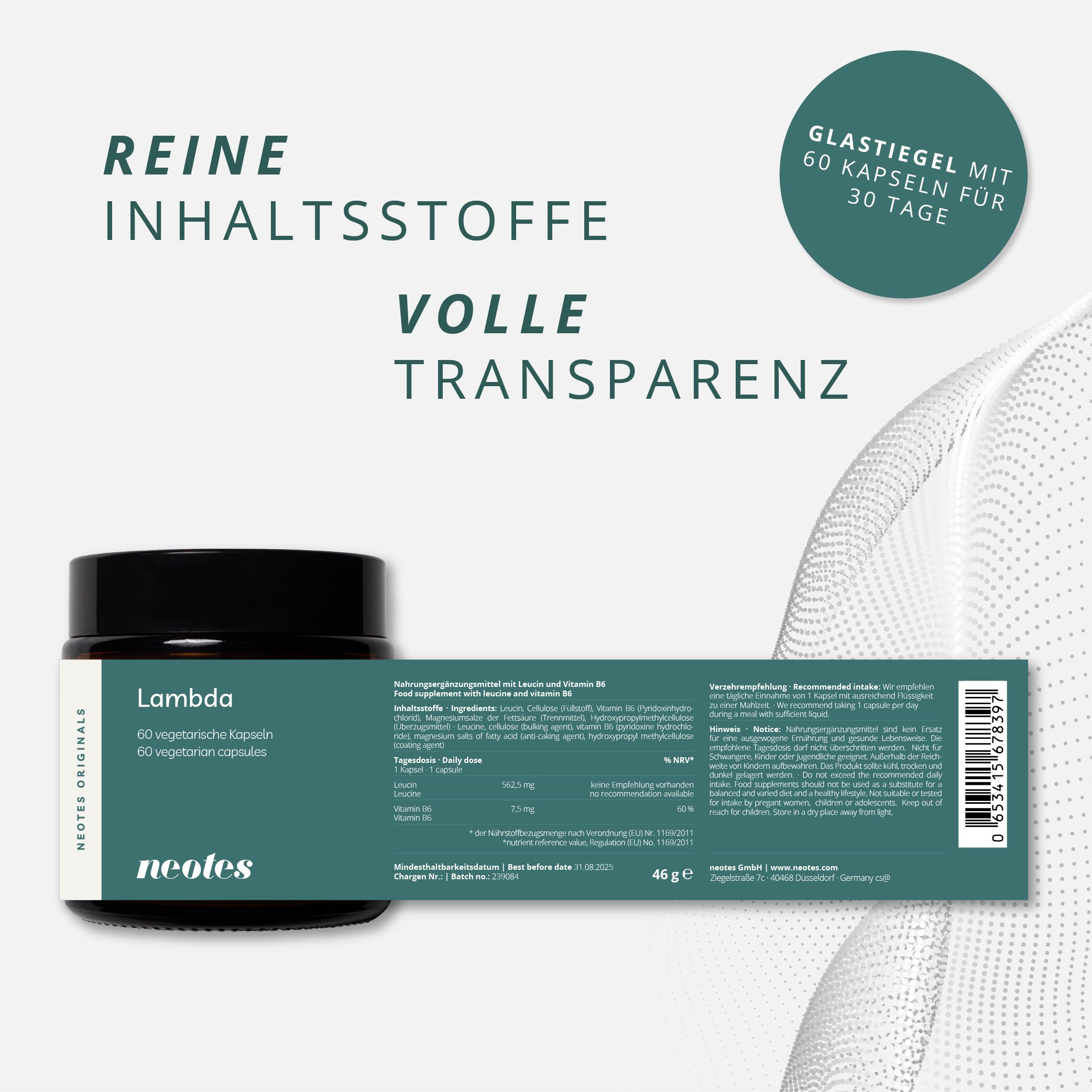 - Jeder Glastiegel neotes Lambda bietet mit 60 Kapseln eine optimale Unterstützung für 60 Tage.