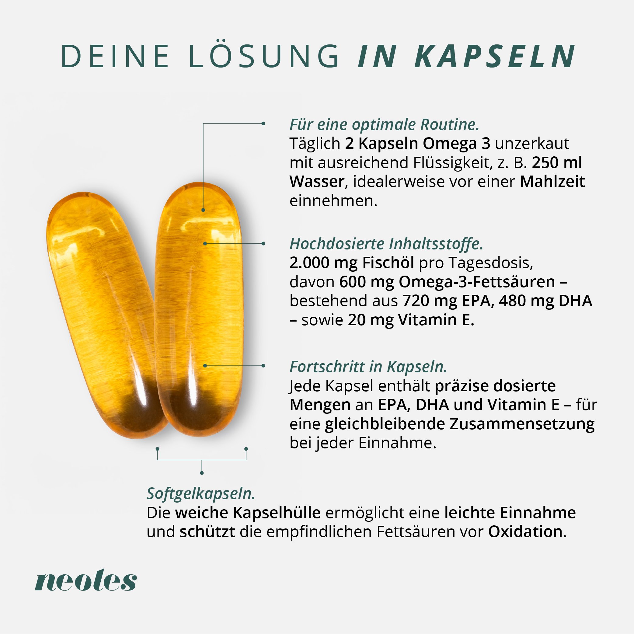 - Jeder Glastiegel neotes Omega-3 bietet mit 90 Kapseln eine optimale Unterstützung für 45 Tage.