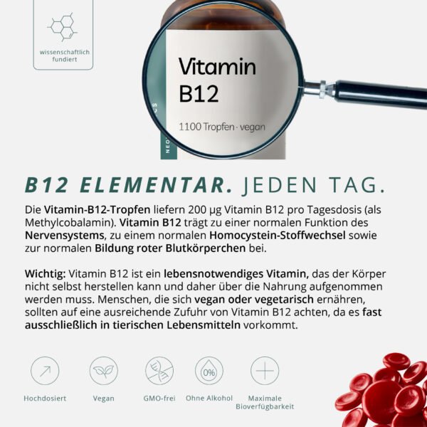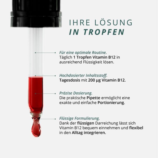 Wir empfehlen, täglich 1 Tropfen Vitamin B12 (200 mg) einzunehmen.